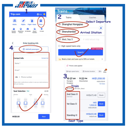 यहाँ दुईवटा एपहरू ——१२३०६ र Trip.com मा तपाईंको हाई-स्पीड ट्रेन बुकिङ गर्नको लागि सरल गाइड छ।