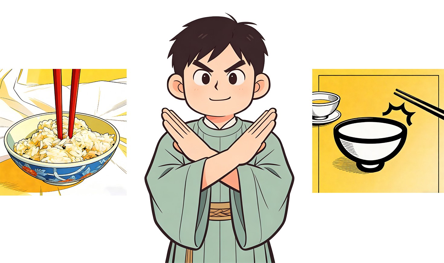 तपाईंले खाना खाइसक्नुभएको छ भनी संकेत गर्न, तपाईंले आफ्नो कचौरा वा प्लेटको शीर्षमा आफ्नो चपस्टिकहरू राम्रोसँग राख्न सक्नुहुन्छ।