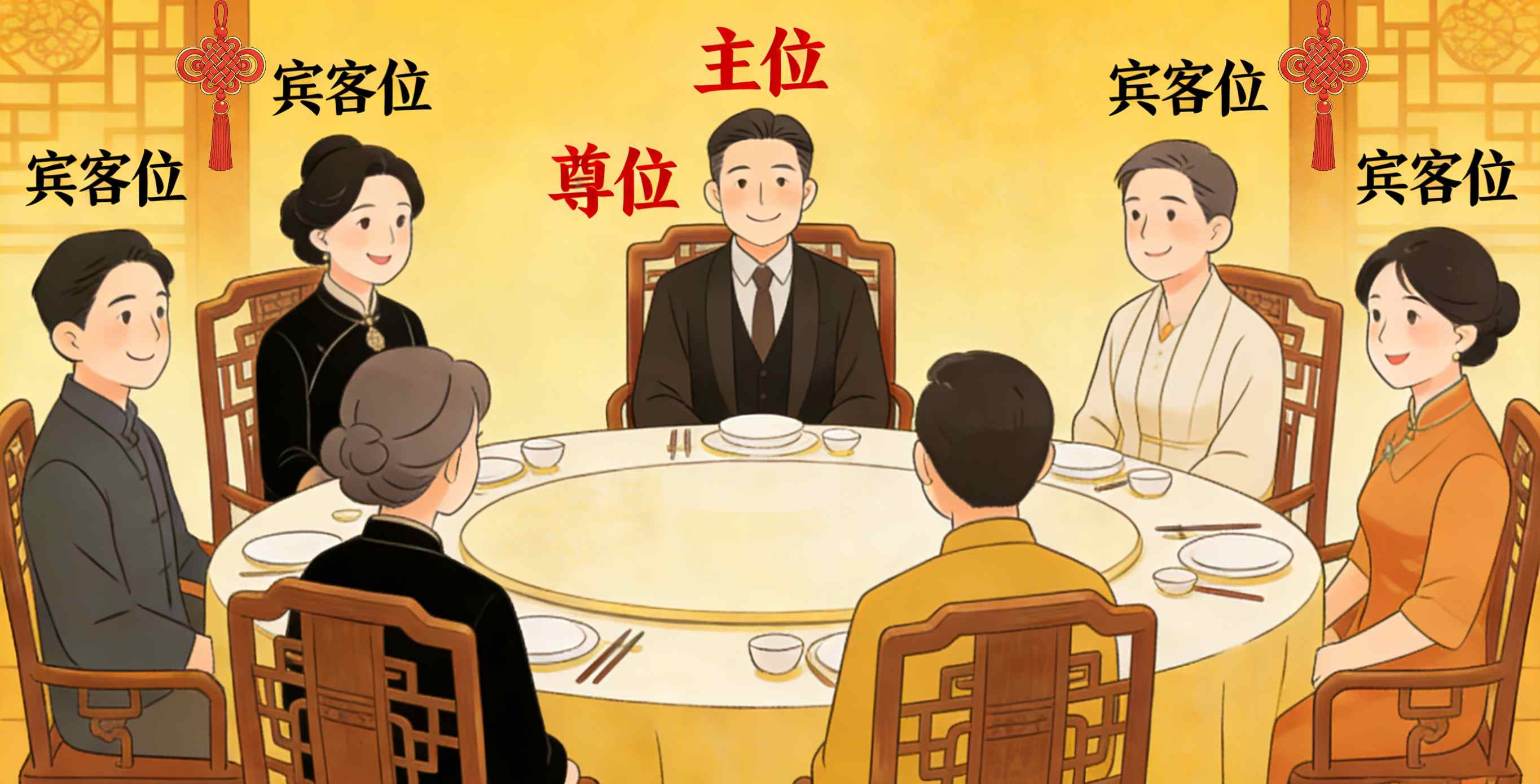 होस्टको बायाँपट्टिको सिट माध्यमिक हुन्छ, दायाँतिरको सिट पछ्याउँछ, र होस्टको सिधै विपरित सिट, सामान्यतया ढोकाको नजिक, कम्तिमा प्रमुख हुन्छ।