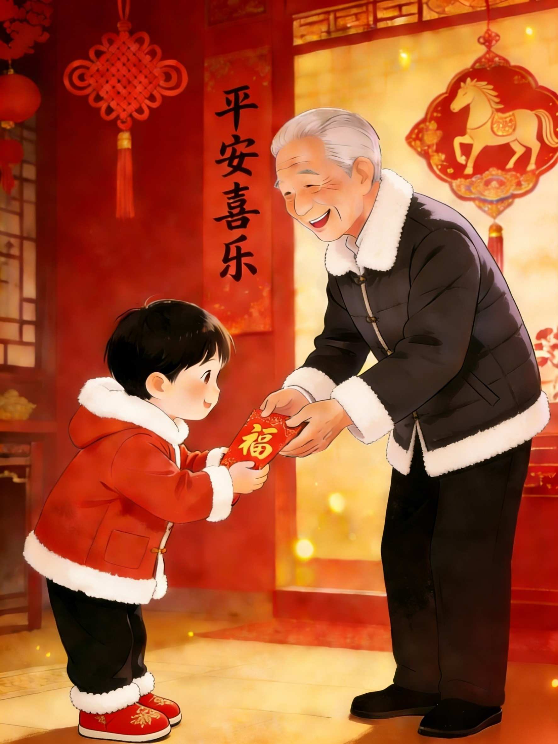 डिनर पछि, बच्चाहरूले आमाबाबु र हजुरबा हजुरआमा वा अन्य नातेदारहरूबाट रातो खाममा भाग्यशाली पैसा प्राप्त गर्ने सबैभन्दा लोकप्रिय चलन हो।